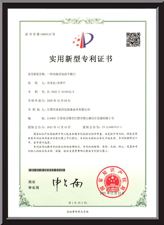 Légmentesen zárható automata tolóajtó